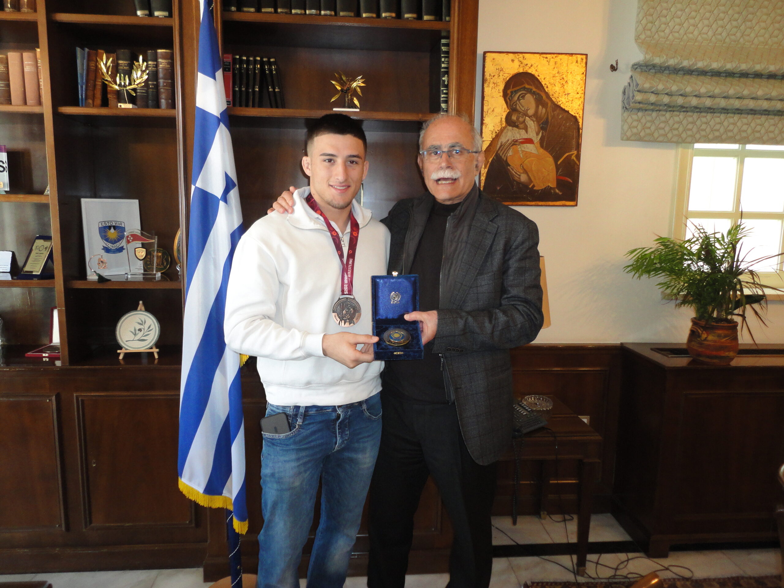 Τον Αρίωνα Κολιτσόπουλο , «χάλκινο» πρωταθλητή της Ελληνορωμαικής Πάλης στο Ευρωπαϊκό πρωτάθλημα U23, που διεξήχθη στα Τίρανα της Αλβανίας, την προηγούμενη Παρασκευή, υποδέχθηκε ο δήμαρχος Πύργου στο Λάτσειο Δημοτικό Μέγαρο. Ο εξ Ηλείας ορμώμενος 18χρονος αθλητής του Π.Σ. « Τιτάν Πύργου» με δύο τεράστιες νίκες επί μεγαλύτερων ηλικιακά άρα και πιο έμπειρων αντιπάλων, ανέβηκε στο βάθρο των νικητών.