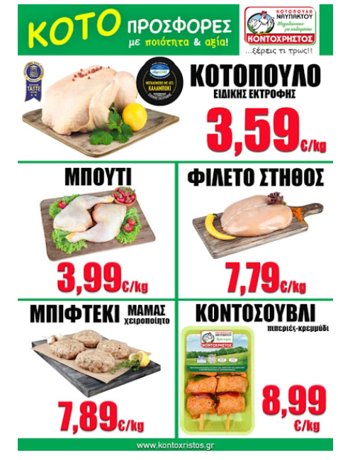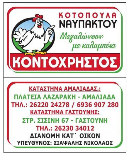 Ακόμα ένα 3ήμερο προσφοράς σε θαυμάσια κοτοπουλίσια είδη από αύριο Πέμπτη 13 Μαρτίου έως και το Σάββατο 29 Μαρτίου, από τα καταστήματα “Κοτόπουλα Ναυπάκτου Κοντοχρήστος” σε Αμαλιάδα και Γαστούνη.