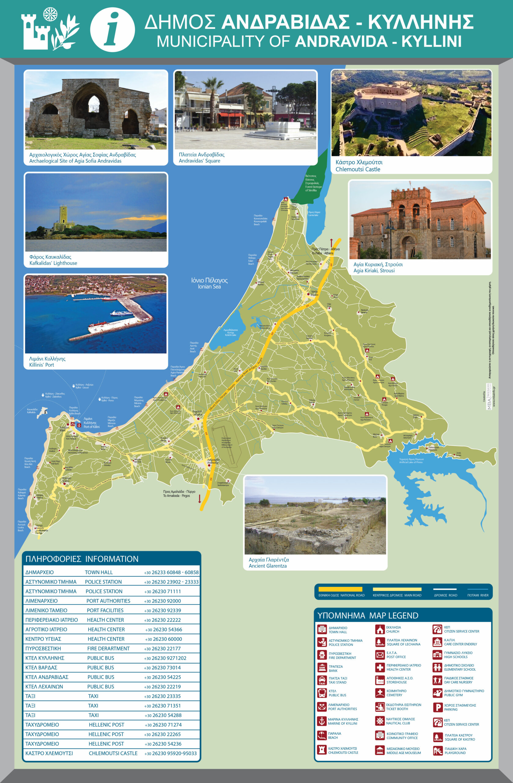Στο πλαίσιο προώθησης και ανάδειξης των τοπικών μας επιχειρήσεων και ενίσχυσης της οικονομικής δραστηριότητας στο Δήμο Ανδραβίδας-Κυλλήνης, προς όφελος της τοπικής οικονομίας και των επαγγελματιών μας, η Δημοτική Αρχή προχώρησε στην εκπόνηση κανονισμού υπαίθριας διαφήμισης και στον ορισμό θέσεων νέων ψηφιακών πινακίδων, μοναδικών στην Π.Ε. Ηλείας. Κατόπιν της προβλεπόμενης διαγωνιστικής διαδικασίας, η εταιρεία MBA – Διαφημιστικές Υπηρεσίες, Χονδρικό Εμπόριο Φωτιστικού Εξοπλισμού, που πλειοδότησε στο διαγωνισμό, ανέλαβε την εκτέλεση του εν λόγω έργου.