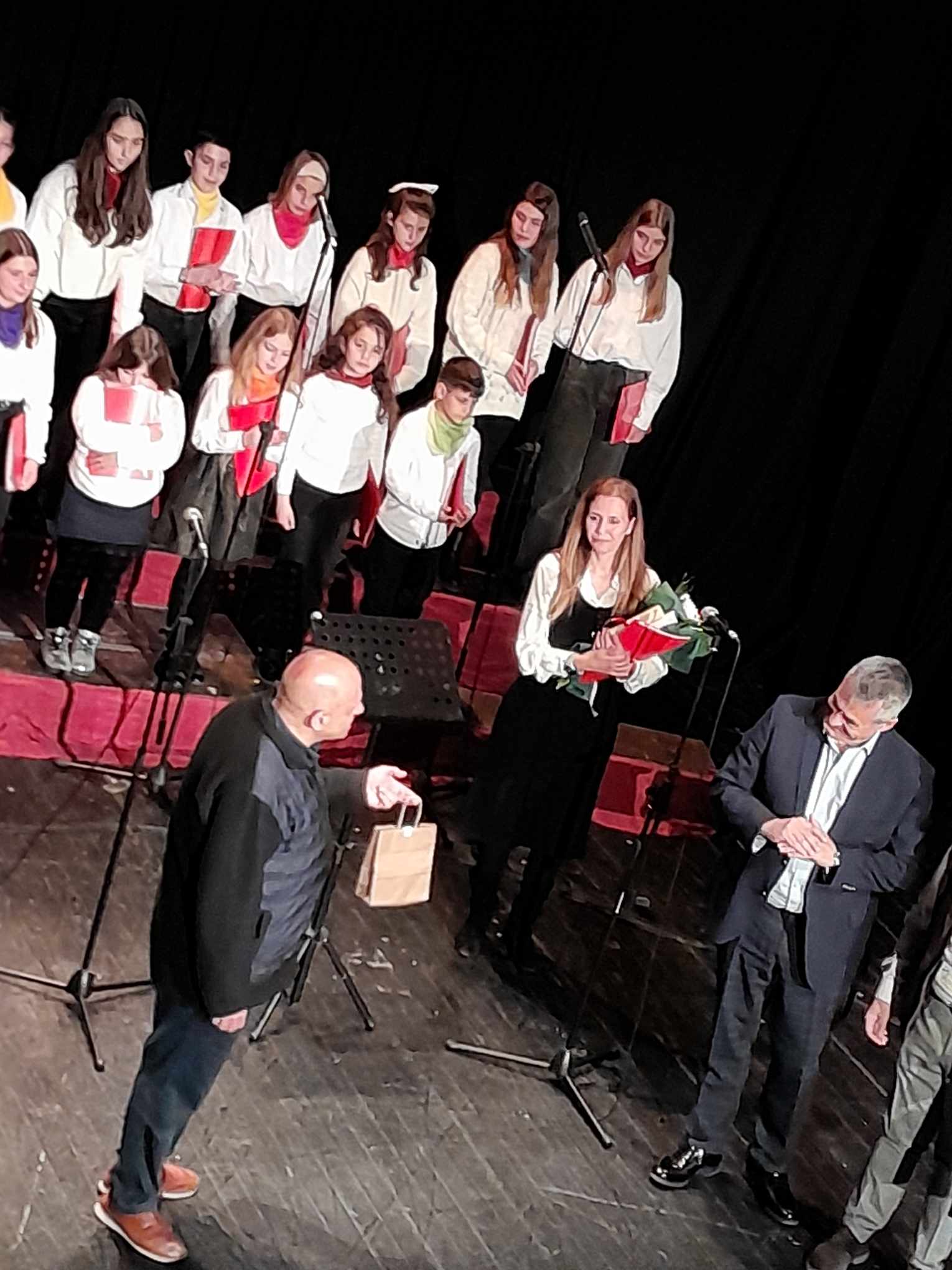 Η Μαέστρος και καθηγήτρια πιάνου του Ωδείου Μαρία Ασημακοπούλου – Ζεύκα διηύθυνε τη χορωδία, με συνοδεία στο πιάνο από την επίσης καθηγήτρια του Ωδείου, Κωνσταντίνα Αναστοπούλου. Με την ολοκλήρωση της εμφάνισης της Χορωδίας, ο Δήμαρχος Τρίπολης Κώστας Τζιούμης ανέβηκε στη σκηνή και αντάλλαξε με τον Πρόεδρο του Δ.Σ. του Ωδείου Γιώργο Γεωργόπουλο τα σχετικά αναμνηστικά δώρα, επαινώντας ταυτόχρονα την όλη προσπάθεια.