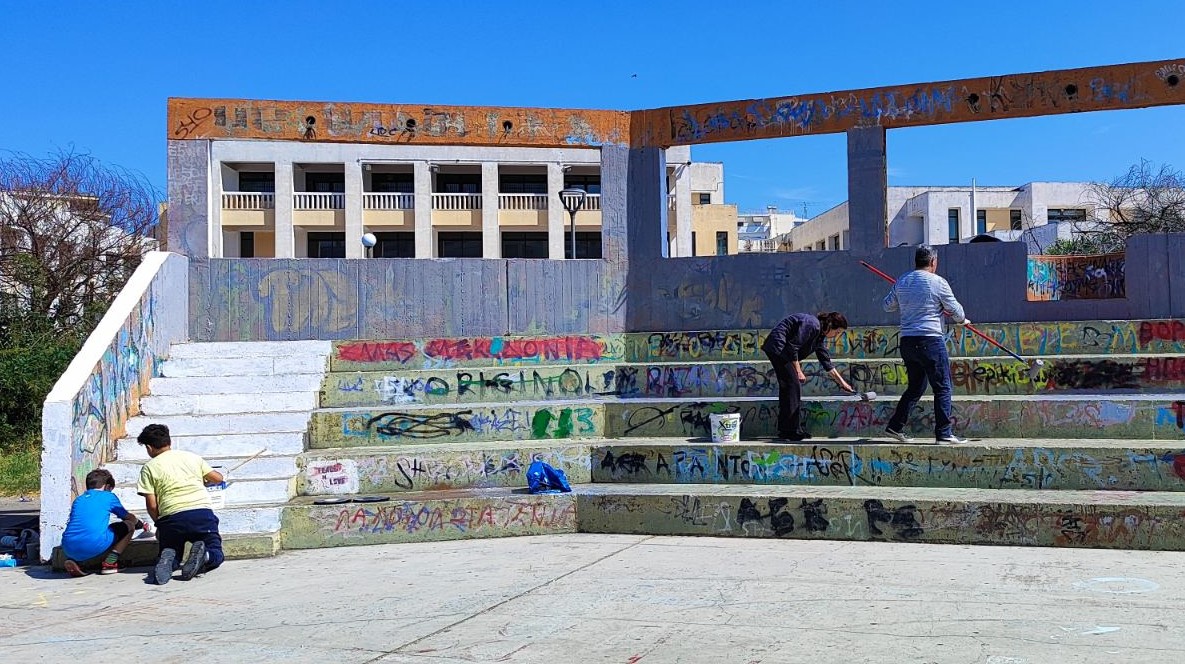 Το μικρό θεατράκι στο Αθλητικό Κέντρο της Αγίας Βαρβάρας, το οποίο παρέμενε για καιρό αναξιοποίητο, μεταμορφώθηκε με τη συλλογική προσπάθεια εθελοντών και μαθητών της περιοχής, αποκτώντας ξανά χρώμα, ζωή και σκοπό. Με πρωτοβουλία του Γραφείου Εθελοντισμού και τη συμμετοχή πολιτών και νεολαίας, πραγματοποιήθηκε ολικός καθαρισμός και βάψιμο του χώρου, με στόχο τη μετατροπή του σε ένα ζωντανό «στέκι» έκφρασης και δημιουργίας για τους νέους της πόλης. Η παρέμβαση-δράση δεν ήταν μόνο αισθητική ήταν και συμβολική. Αποτελεί ένα μήνυμα συνεργασίας, ελπίδας και ενεργούς συμμετοχής.