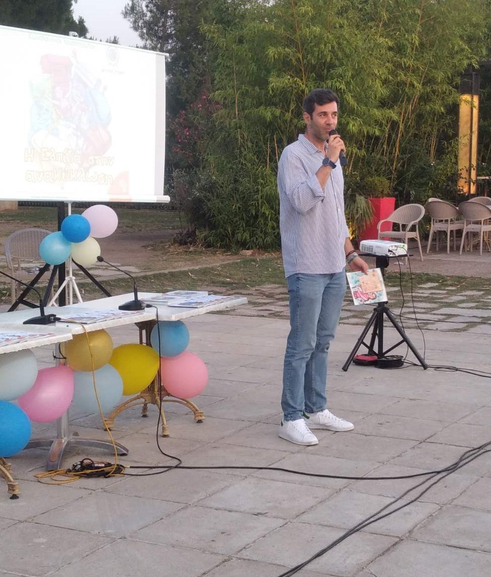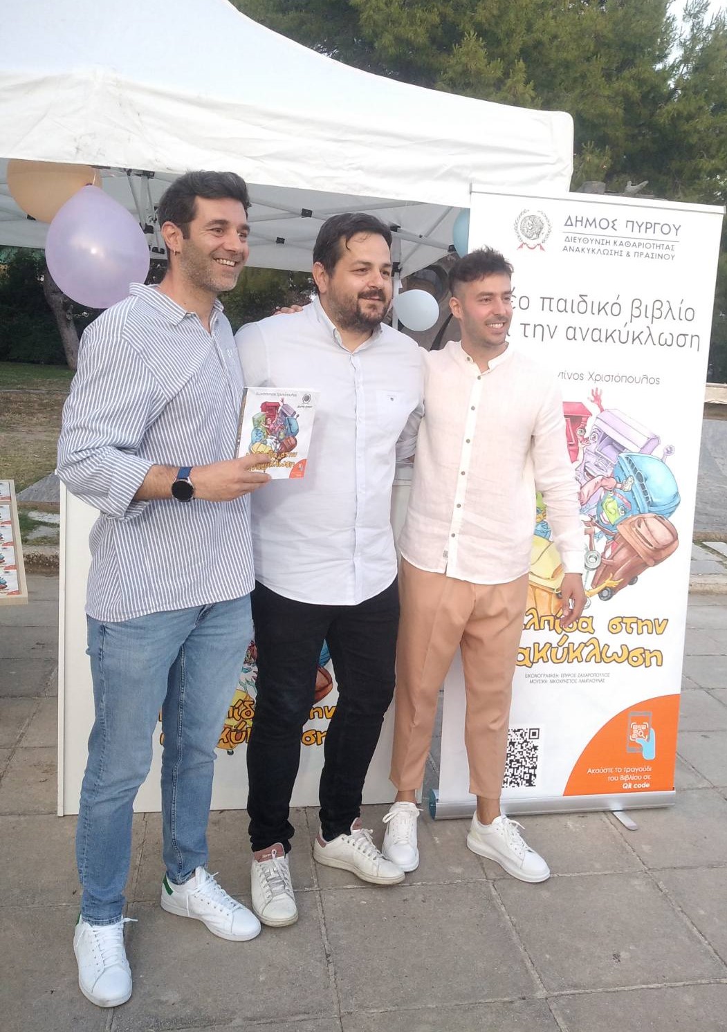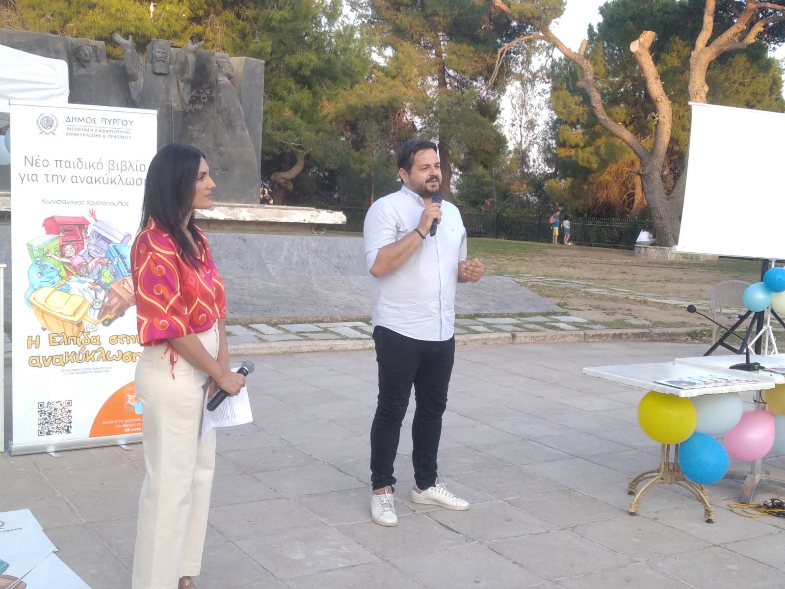 Ο Βασίλης Φάμελλος, Αντιδήμαρχος Περιβάλλοντος, Καθαριότητας – Ανακύκλωσης & Πρασίνου, στον χαιρετισμό του, αφού εξέφρασε τις θερμές του ευχαριστίες προς τους Κώστα Χριστόπουλο και Νικόχρηστο Λαμπαούνα για την δημιουργία του παραμυθιού και του τραγουδιού, αναφέρθηκε στις δράσεις που υλοποιεί ο δήμος Πύργου και έχουν ως σκοπό την προστασία του περιβάλλοντος μέσα από την ανακύκλωση. Επίσης τόνισε ότι το επόμενο διάστημα, μαζί με τους δύο πρωταγωνιστές της δημιουργίας της παιδικής έκδοσης θα επισκεφτούν τα δημοτικά σχολεία του δήμου προκειμένου να διανείμουν το παραμύθι στους μαθητές.