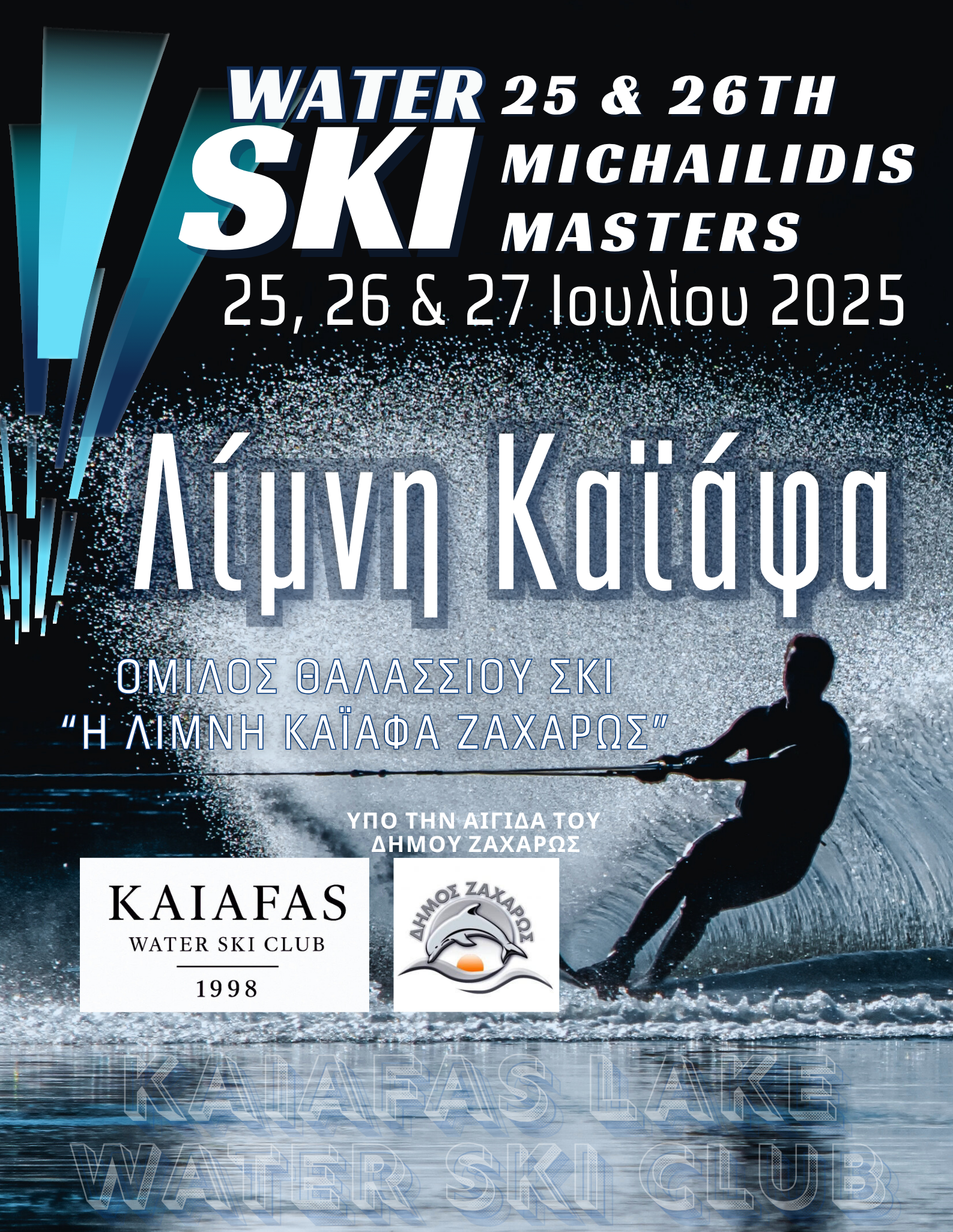 Ο Δήμος Ζαχάρως και ο Όμιλος Θαλασσίου Σκι «Η Λίμνη Καϊάφα Ζαχάρως» έχουν την τιμή να προσκαλέσουν το κοινό στη διεθνή αθλητική διοργάνωση θαλάσσιου σκι με τίτλο “25 & 26th Michailidis Masters”, η οποία θα λάβει χώρα στις 25, 26 και 27 Ιουλίου 2025 στη λίμνη Καϊάφα. Η διοργάνωση αναμένεται να φιλοξενήσει αθλητές υψηλού επιπέδου από την Ελλάδα και το εξωτερικό, σε ένα τριήμερο αγωνιστικής δράσης που θα αναδείξει τη λίμνη Καϊάφα ως τόπο διεθνούς αθλητικής σημασίας.