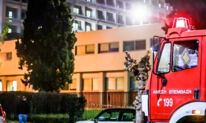Η φωτιά μαίνεται στο υπόγειο του νοσοκομείου. Επιχειρούν έξι πυροσβεστικά οχήματα με 25 άνδρες.
