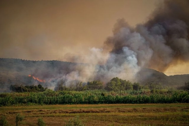 Το έργο της κατάσβεσης δυσχεραίνουν οι δυνατοί άνεμοι.