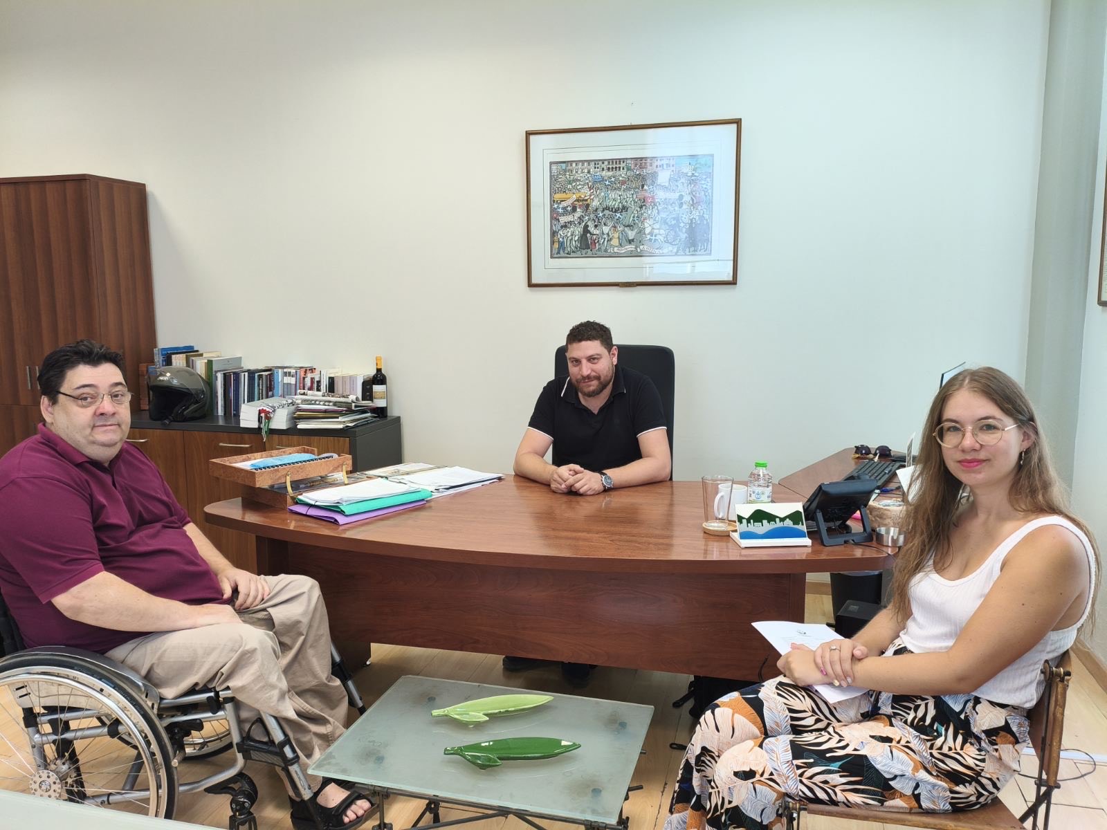 Σε αυτό το πλαίσιο, ο Πρόεδρος της Π.ΟΜ.Α.μεΑ Δ.Ε. & Ν.Ι.Ν., κ. Αντώνης Χαροκόπος μαζί με την Οργανωτική Γραμματέα, κα Ουλιάνα Ιβάντσικ, συναντήθηκε με τον Αντιδήμαρχο Πολιτισμού, Προγραμματισμού και Δημοτικής Περιουσίας Δήμου Πατρέων, κ. Απόστολο Αγγελή ο οποίος ενημερώθηκε για το Φεστιβάλ, καθώς ο Δήμος Πατρέων στηρίζει, όπως όλα τα προηγούμενα έτη, τη διοργάνωση και σε συνεργασία με την Ομοσπονδία θα συμβάλλει σε εκδηλώσεις και δράσεις.