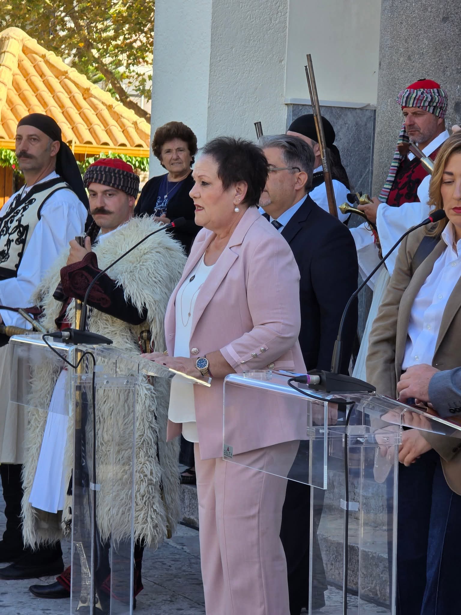 Στη συνέχεια, η Αντιδήμαρχος Πολιτισμού και Παιδείας κ. Κακαλέτρη Γεωργία καλωσόρισε τους προσκεκλημένους, ενώ ακολούθησε χαιρετισμός από την Αναπληρώτρια Δημάρχου και Αντιδήμαρχο Τουρισμού Crotone, κ. Giovanna Lamana. Το πρόγραμμα πλαισιώθηκε με μια εντυπωσιακή παρουσίαση παραδοσιακών στολών από το Διοικητικό Συμβούλιο του Συλλόγου «Χαράλαμπος Βιλαέτης», και ολοκληρώθηκε με παραδοσιακούς χορούς από τα μέλη του Εθιμοτυπικού Συλλόγου Λεχαινών.