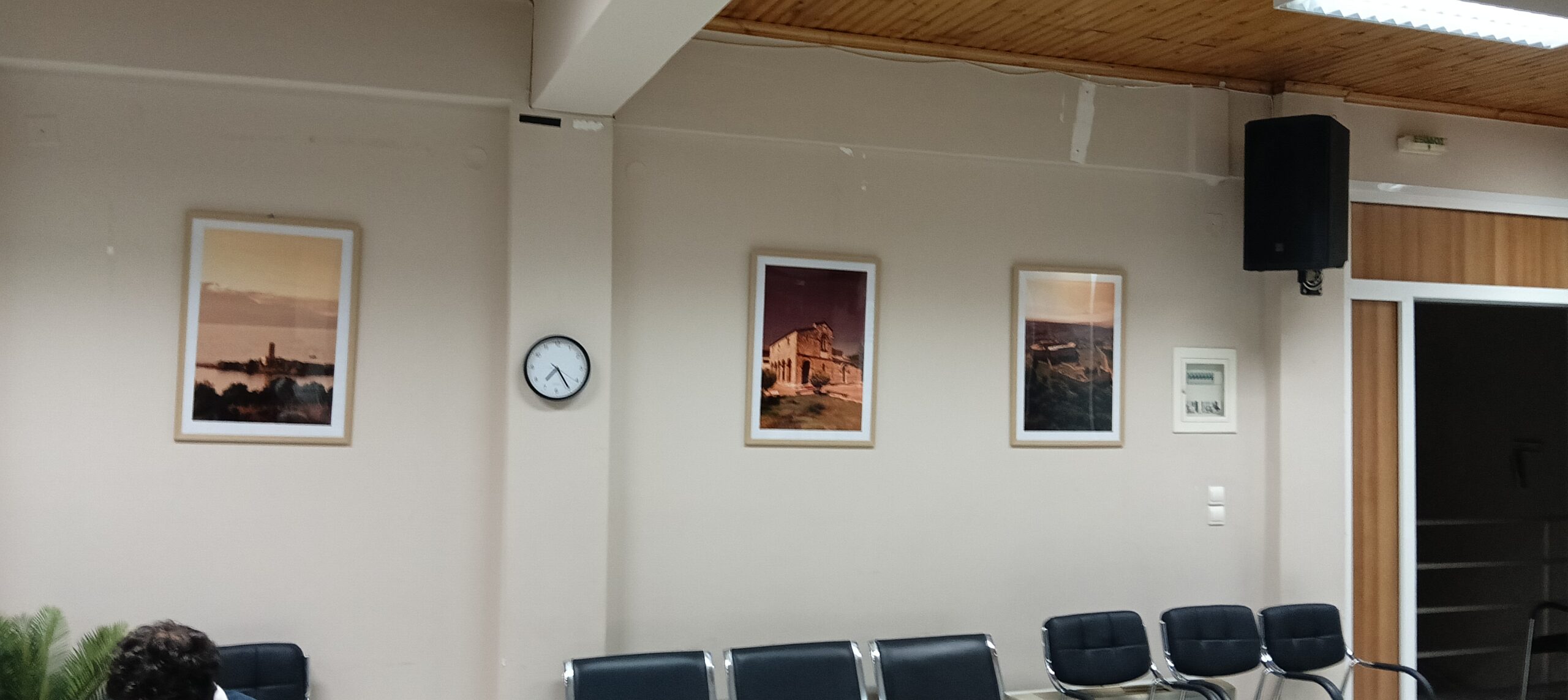 Παράλληλα, η αίθουσα «ζωντάνεψε» αισθητικά, καθώς στους τοίχους τοποθετήθηκαν όμορφες εικόνες και έργα με πρωτοβουλία της ειδικής συνεργάτιδας του δημάρχου, Αμαλίας Ηλιοπούλου, δίνοντας μια πιο φιλόξενη και πολιτισμένη νότα στον χώρο.