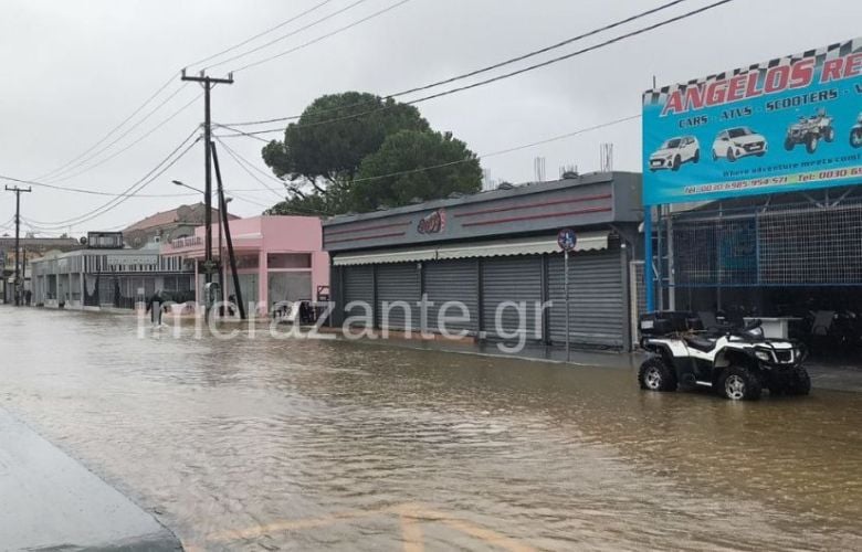 «Χτύπησε» την Ζάκυνθο η κακοκαιρία δημιουργώντας προβλήματα σε μεγάλο μέρος του νησιού. Πημμύρισαν αρκετοί δρόμοι, ενώ εγκλωβίστηκε και κόσμος, με αποτέλεσμα να χρειαστεί επέμβαση της Πυροσβεστικής. Σύμφωνα με το meteo του Εθνικού Αστεροσκοπείου έως τις 16:00 το μεγαλύτερο ύψος βροχής καταγράφηκε στη Ζάκυνθο (62.8 χιλιοστά).