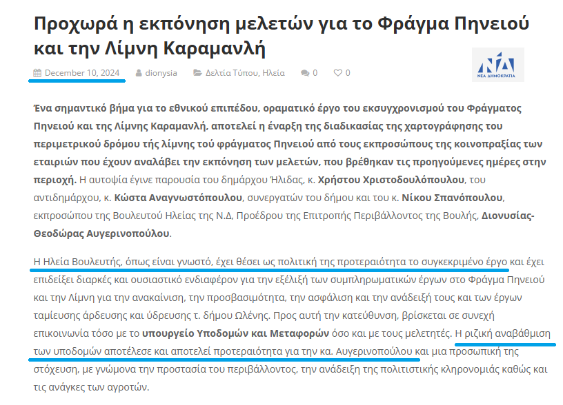 Στο ίδιο έργο θεατές και με το νερό της Λίμνης Πηνειού. Από το 2021 φωνές, προειδοποιήσεις, αναλύσεις. Και τι έγινε; Απολύτως τίποτα. Η Περιφέρεια Δυτικής Ελλάδας “τύρβαζε περί άλλων”, ώσπου η κατάσταση έφτασε στο μη παρέκει. Όταν πλέον δεν υπήρχε τίποτα να σωθεί, τότε θυμήθηκαν να πάρουν μέτρα. Κλασικά ελληνικά μέτρα: εκ των υστέρων και για τα μάτια του κόσμου.