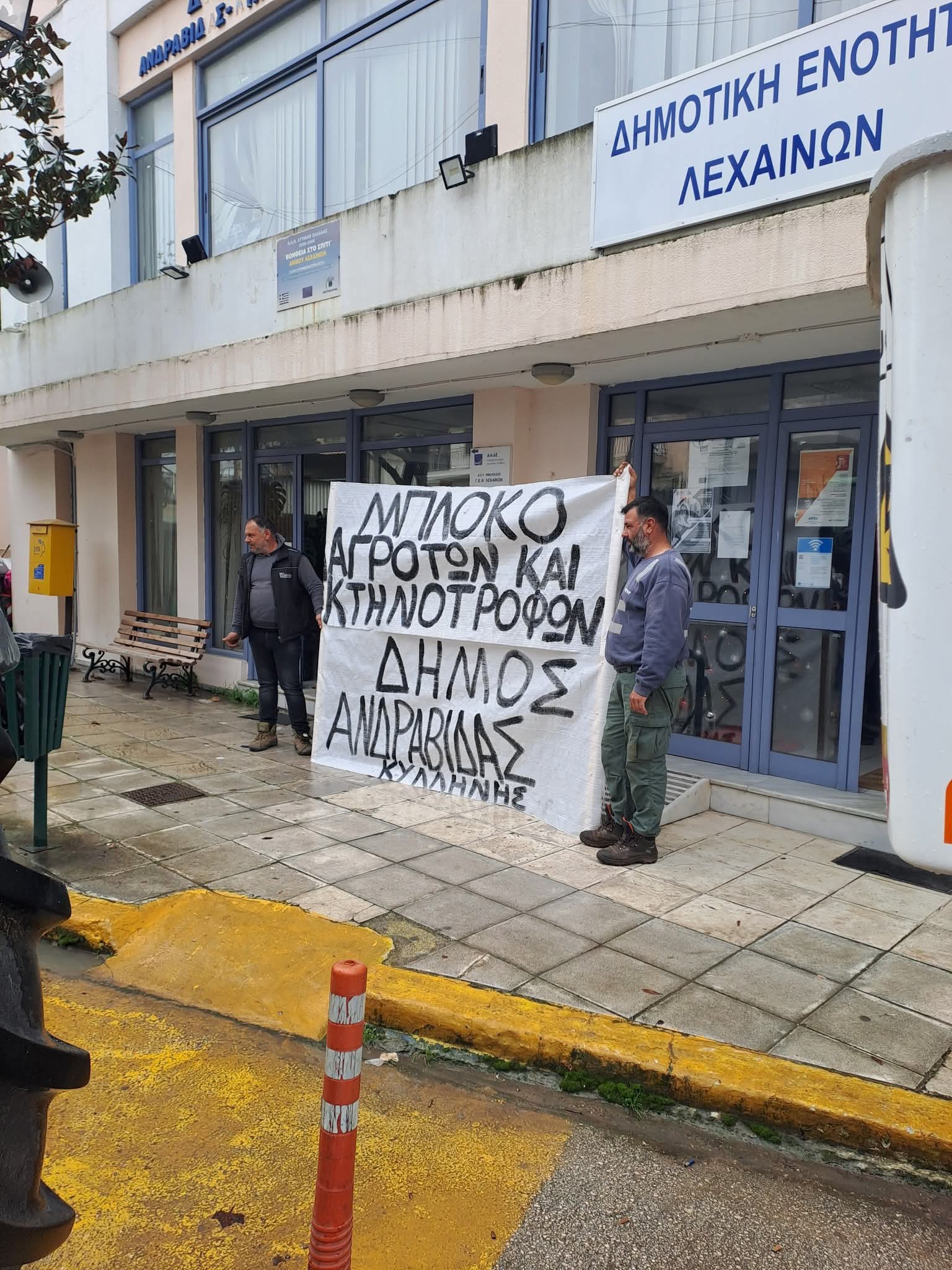 Παράλληλα, κινητοποίηση οργανώθηκε και στα Λεχαινά, όπου παραγωγοί συγκεντρώθηκαν έξω από το δημαρχείο με τρακτέρ και πανό, εκφράζοντας την αγανάκτησή τους για τις συνεχείς αυξήσεις στο κόστος παραγωγής, τις καθυστερήσεις στις αποζημιώσεις και την αβεβαιότητα που επικρατεί στον κλάδο.