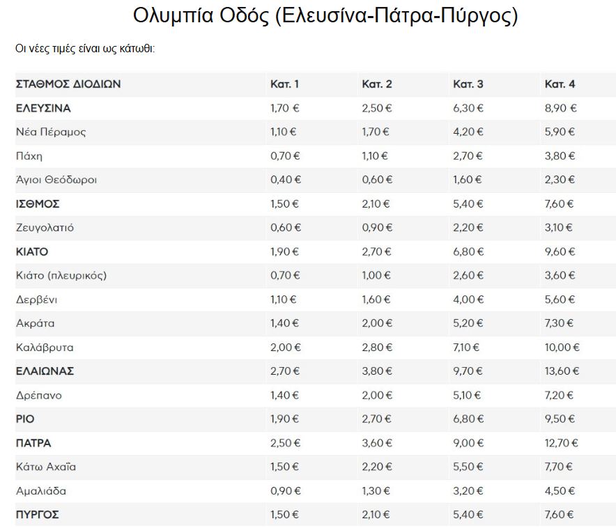 Αυξημένες θα είναι από την 1η Ιανουαρίου 2026 οι τιμές στα διόδια και στον αυτοκινητοδρόμο Ελευσίνα–Πάτρα–Πύργος.