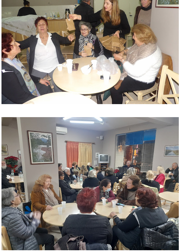 «Πρέπει να σταθούμε στους συνανθρώπους μας που αντιμετωπίζουν προβλήματα οικονομικά, υγείας και μοναξιάς. Πρέπει ο ένας να βοηθάει τον άλλον, αυτό είναι το νόημα των Χριστουγέννων» ανέφερε η κ. Κουσκουρή. Ακολούθησε μπουφές με πλούσια εδέσματα, συνοδεία ζωντανής μουσικής από τον καλλιτέχνη Στάθη Θεοδόση, που προσέφερε άφθονη ψυχαγωγία σε όλους τους παρευρισκόμενους με τα πολύ όμορφα διαχρονικά τραγούδια του, ενώ το κέφι κορυφώθηκε και με διάφορους χορούς!