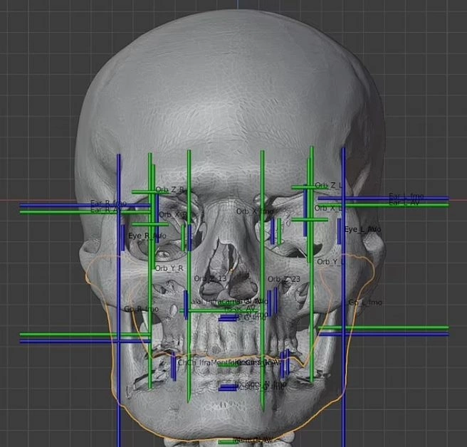 Στη συνέχεια, ανιχνεύσαμε το προφίλ του προσώπου χρησιμοποιώντας στατιστικές προβολές. «Το συμπληρώσαμε με την τεχνική ανατομικής παραμόρφωσης, στην οποία η τομογραφία του κεφαλιού ενός ζωντανού ανθρώπου προσαρμόζεται έτσι ώστε το κρανίο του εικονικού δότη να ταιριάζει με αυτό του αγίου. «Το τελικό πρόσωπο είναι μια παρεμβολή όλων αυτών των πληροφοριών, αναζητώντας ανατομική και στατιστική συνοχή». Το αποτέλεσμα είναι δύο σετ εικόνων: ένας στόχος σε κλίμακα του γκρι και ένας ακόμη καλλιτεχνικός – προσθέτοντας χαρακτηριστικά όπως γένια και ρούχα, εμπνευσμένα από την εικονογραφία του Αγίου Νικολάου. Ωστόσο, τα λείψανα του αγίου αποκαλύπτουν περισσότερα από το πρόσωπό του.